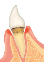 歯磨き剤のCMなどでよく耳にする「歯周病」。歯と歯ぐきの間に溜まった歯垢(細菌の集まり)の繁殖で歯ぐきに炎症を起こし、悪化すれば歯の土台部分(骨)まで溶かしてしまう恐ろしい病気です。進行が遅く、末期になるまで症状に気付かない方も多いため、定期的に歯科医院に来て早期発見に努めましょう。当院では、むし歯など歯周病以外で来院される患者さまにも、歯周病チェックを行っています。
